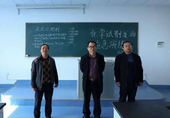 蒋天明副校长和李智辉副校长到场指导,对本次演练给予了充分肯定,要求:一是提高站位,牢固树立安全第一、预防为主的校园安全意识;二是加强制度建设,规范实验室管理,确保实验安全,杜绝安全事故的发生;三是今后要加大演练规模及范围,扩大影响力,进一步增强广大师生的安全意识及安全事故应急处理能力。