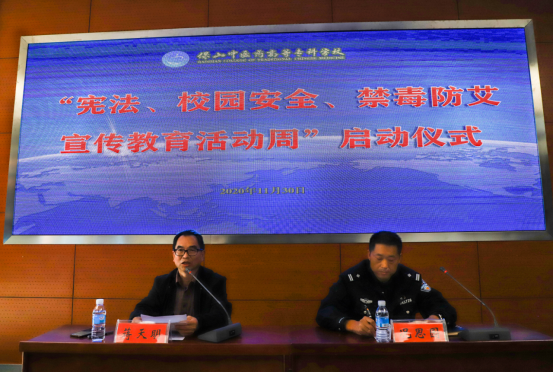 为深入学习贯彻习近平新时代中国特色社会主义思想、党的十九大、十九届二中、三中、四中、五中全会精神以及习近平总书记关于建设平安中国重要指示精神,根据省市相关文件要求,结合第33个“世界艾滋病日”、第七个国家宪法日、第三个“宪法宣传周”,11月30日下午,保山中医专举行“宪法、校园安全、禁毒防艾宣传教育活动周”启动仪式。