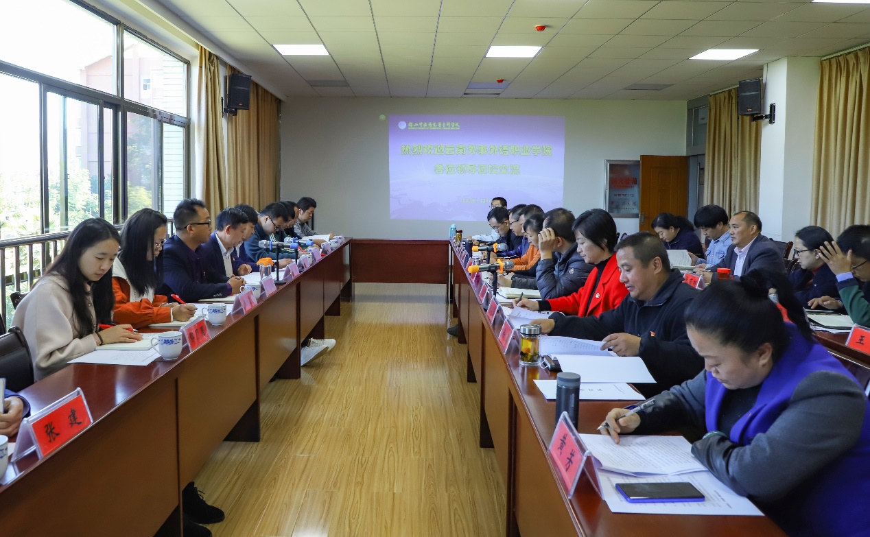 在与云南外事外语职业学院共建座谈会上,校党委副书记杨朝丽代表学校党委向前来参加共建活动的领导、党务干部表示欢迎,并介绍了我校基本情况、党建方面的主要做法成效及学校二级党组织结对共建方案,希望共建双方通过采取“联学”“联建”“联办”“联培”“联动”“联创”等方式,整体提升双方基层党建水平。云南外事外语职业学院党委副书记、副校长邓超介绍了学校的基本情况和党建工作成效。