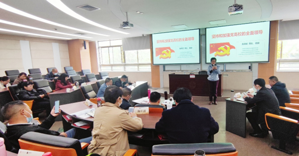 讲座以习近平总书记2012年11月至2021年7月间关于“加强党的全面领导”的重要讲话内容为素材,围绕高校为什么要坚持和加强党的全面领导;如何坚持和加强党对高校的全面领导两方面展开。