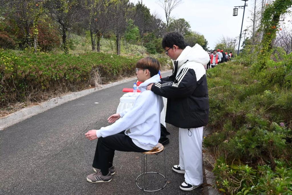 活动现场,师生团队设立健康咨询与康复体验区,提供体态评估、肌肉放松指导、运动损伤预防科普等服务,并针对赏樱踏青中常见的关节劳损、肌肉酸痛等问题,现场演示科学拉伸与康复技巧,让市民在欣赏樱花同时,收获实用的健康知识。