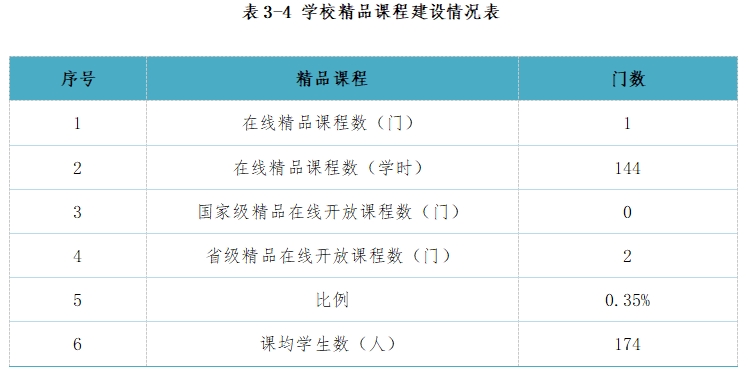 强化课程改革,积极对接新产业、新业态、新模式、新职业,全面提升课程建设质量。以信息化技术为基础,整合课程资源,推动课程改革,适应新时代学生学习方式。在全校开展精品在线开放课程遴选培育工作,并取得突出成效。数字课程资源建设。通过校企合作方式,建设了10门线上课程以及混合式课程,并智慧树等开放课程平台上以慕课等形式提供线上学习,2万多名学生选课学习。