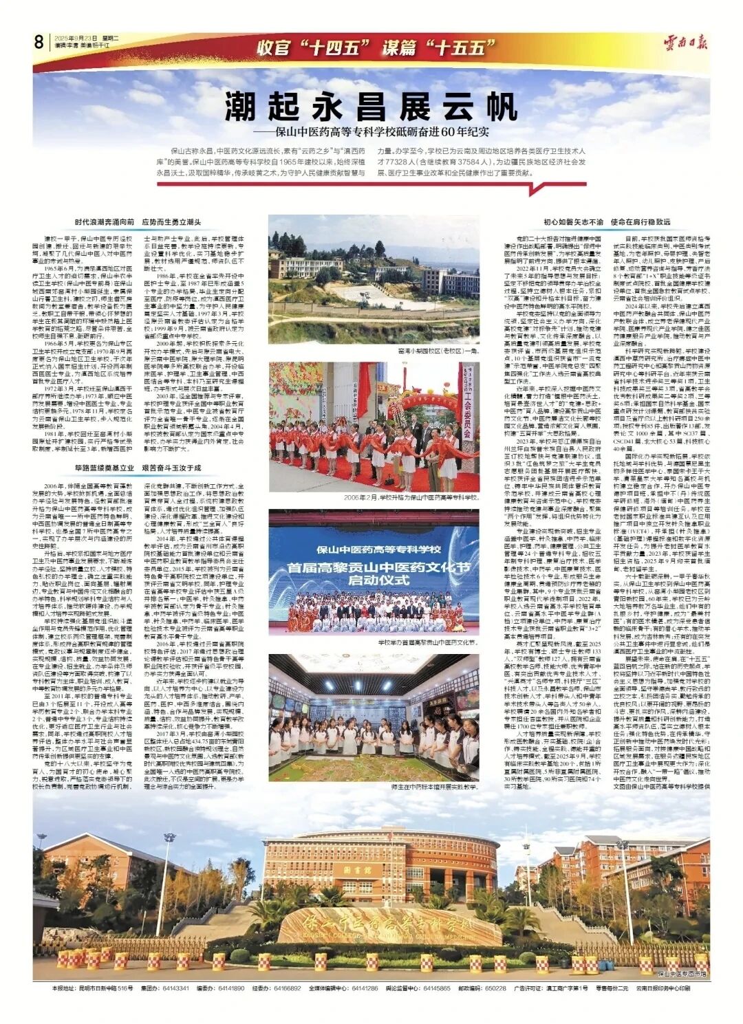 将思想政治教育与教育教学工作深度融合,实现思政教育与专业成长、价值塑造的有机统一。引导师生在沉浸式学习中强化国家意识和爱国情怀。把“张桂梅思政大讲堂保山中医专分课堂”作为思政教育工作的重要载体,与学校思政课程建设深度融合,不断创新形式和内容,开展分课堂10讲,努力打造具有学校特色和地方印记的“行走的思政课”,构建完善“大思政课”工作格局,持续创新理论宣讲形式,开展“云岭师生说暨党的创新理论我来讲”活动、“中医药+廉洁故事”活动、看图片讲故事大赛等活动。挖掘中医药经典篇目、中医药典故、中医药故事中的清廉元素,把中医药文化与全面从严治党有机融合,开出“中医药+廉洁”良方,建设集廉政教育和警示教育为一体的“杏林清风”廉洁文化长廊,营造中医药特色浓郁的清廉育人氛围。在铸牢中华民族共同体意识教育上持续发力,学校先后获评第三批“保山市民族团结进步示范学校”和“民族团结进步教育基地”,成功创建为“第四批全省民族团结进步示范单位”和“全省铸牢中华民族共同体意识教育示范学校”,1名同学在国家民委主办,教育部、共青团中央协办的“学好概论金教材 青春托举中国梦”大学生主题演讲比赛中荣获三等奖,持续推动铸牢中华民族共同体意识教育各项措施落细落实,为思想政治教育夯实根基。