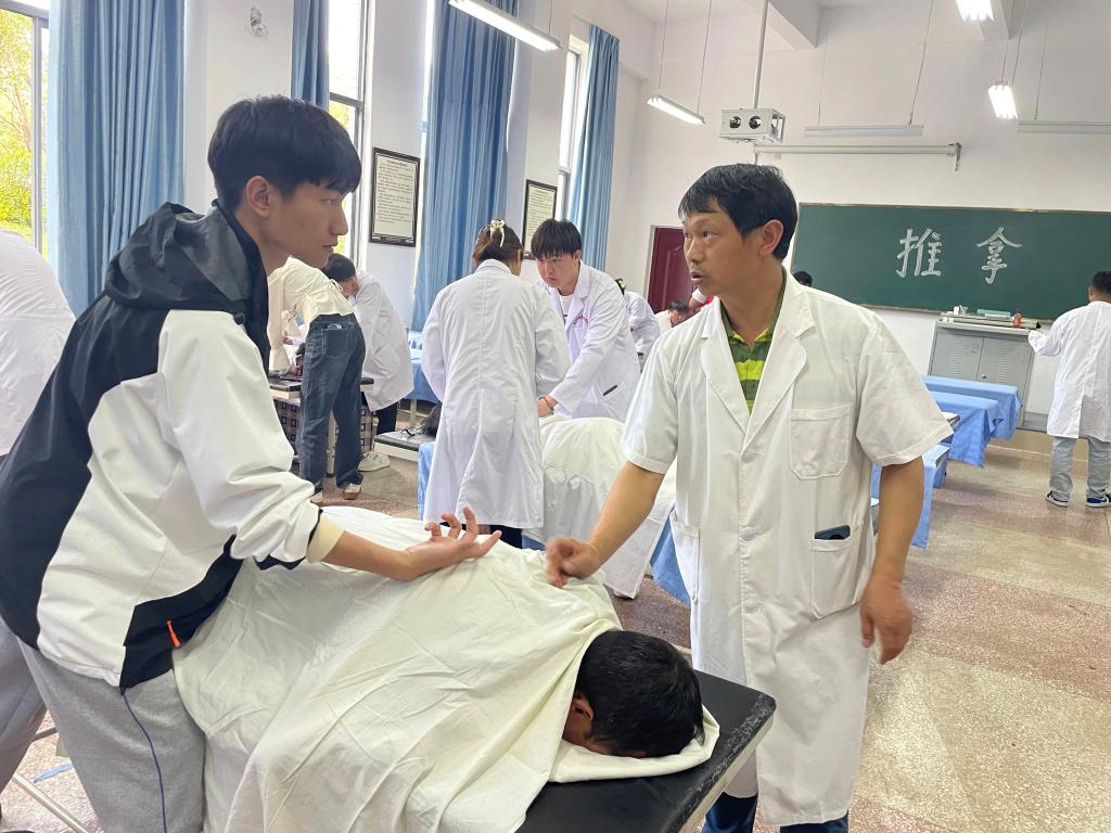 坚持立德树人根本任务,构建党建统领的“岗课赛证融通”综合育人体系,将思政教育与中医药文化传承有机结合。打造“党建+思政”育人阵地,邀请专家、行业名医开展专题讲座20余场,推动思政元素与专业课程深度融合;搭建“党建+实践”育人平台,组建“党员志愿服务队”,组织师生党员、积极分子参与临床见习、健康科普、“三下乡”、义诊等实践活动,年均服务时长超3000小时;深化“党建+竞赛”培育模式,党员教师牵头组建技能竞赛指导团队,针对性开展赛前集训,助力学子在各类赛事中脱颖而出。