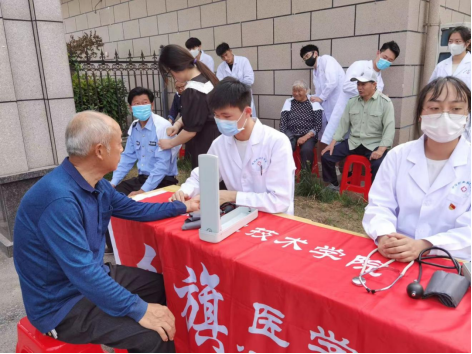 2022年4月24下午,beat365中文登录入口红旗行动小组在龙飞苑继续开展志愿服务活动。为龙飞苑小区居民测量血压、按摩缓解疲劳、讲解健康饮食和卫生知识。