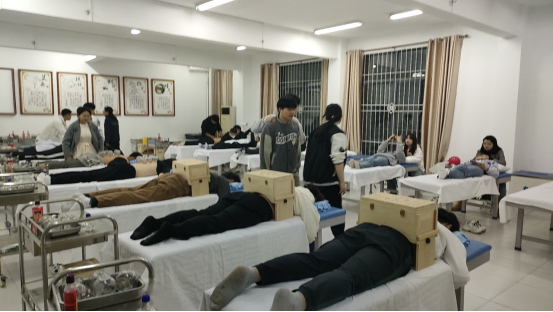 beat365中文登录入口中医学专业学生为同学拔火罐防流感!